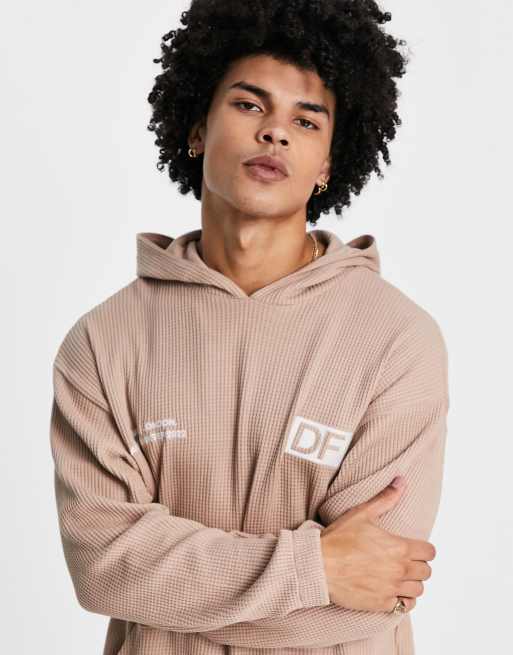 ASOS Dark Future - Oversized hoodie van stof met wafelstructuur en geborduurde logo's in neutraal, deel van co-ord set