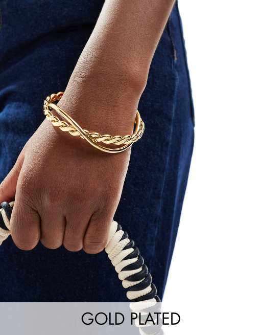 ASOS DESIGN - 14k vergulde brede armband met kronkeldetail