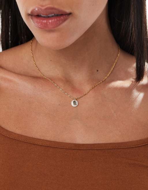ASOS DESIGN - 14k vergulde ketting met Schorpioen-sterrenbeeld en schijfje van imitatieparel met cadeauzakje
