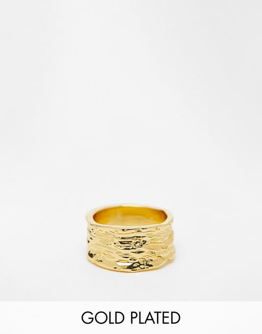 ASOS DESIGN - 14k vergulde ring met gehamerd ontwerp in goud