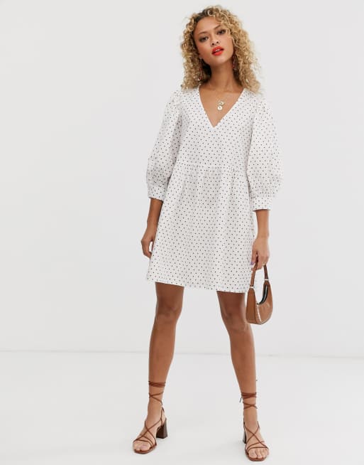 ASOS DESIGN - Aangerimpelde mini-jurk met V-voorkant en V-achterkant in stippenprint