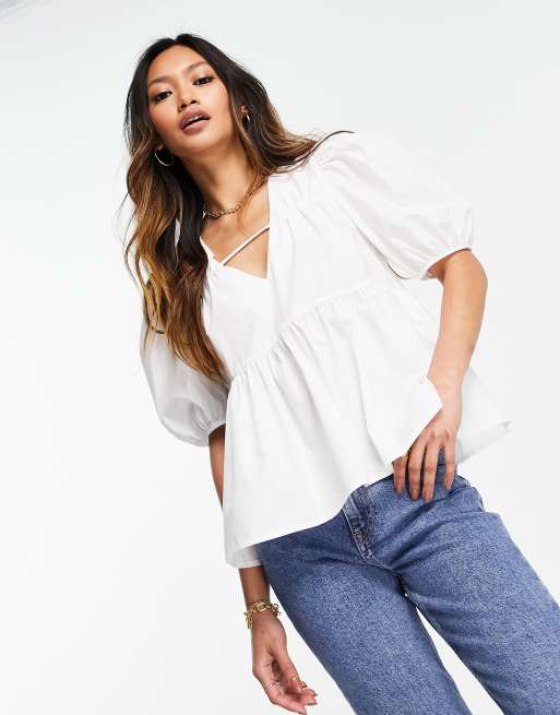 ASOS DESIGN - Aangerimpelde top met v-hals in wit