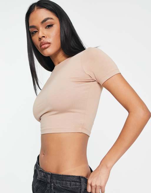 ASOS DESIGN - Aansluitend crop T-shirt in taupe