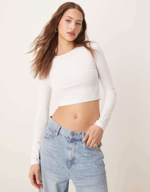 ASOS DESIGN - Aansluitend cropped T-shirt met lange mouwen in wit