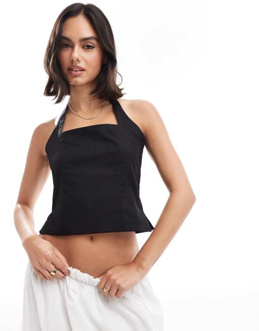 ASOS DESIGN - Aansluitende haltertop van poplin in zwart