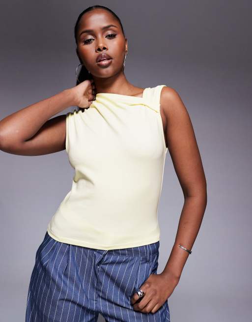 ASOS DESIGN - Aansluitende top met gedraaid detail aan de hals in karnemelkgeel