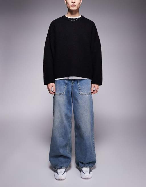 ASOS DESIGN - Achterstevoren super baggy jeans in lichte wassing blauw