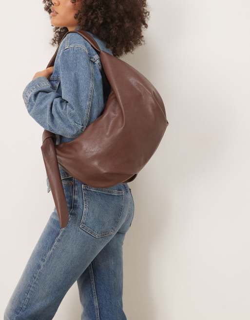 ASOS DESIGN - Afgeronde schoudertas met geknoopt detail in bruin