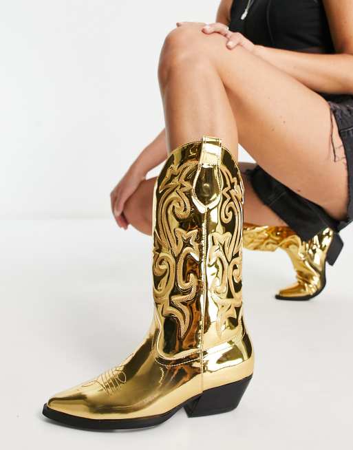 ASOS DESIGN - Andi - Platte western laarzen in spiegelend goud