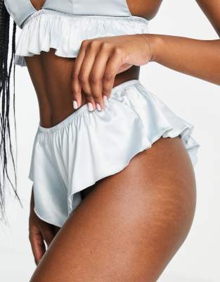 ASOS DESIGN - Anni - Satijnen Franse slip met ruches in blauw