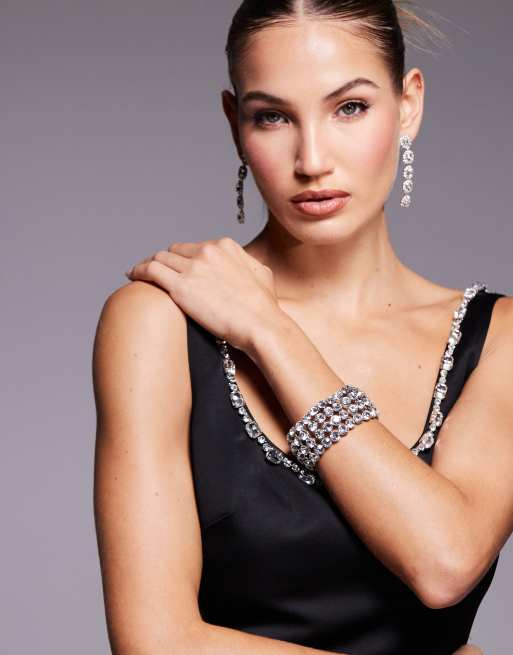 ASOS DESIGN - Armband bedekt met kristallen in zilverkleur