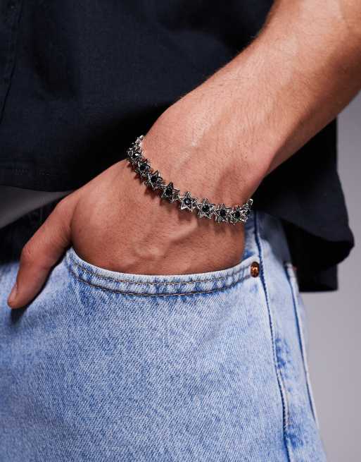 ASOS DESIGN - Armband in zilverkleur met sterren en zwart kristal