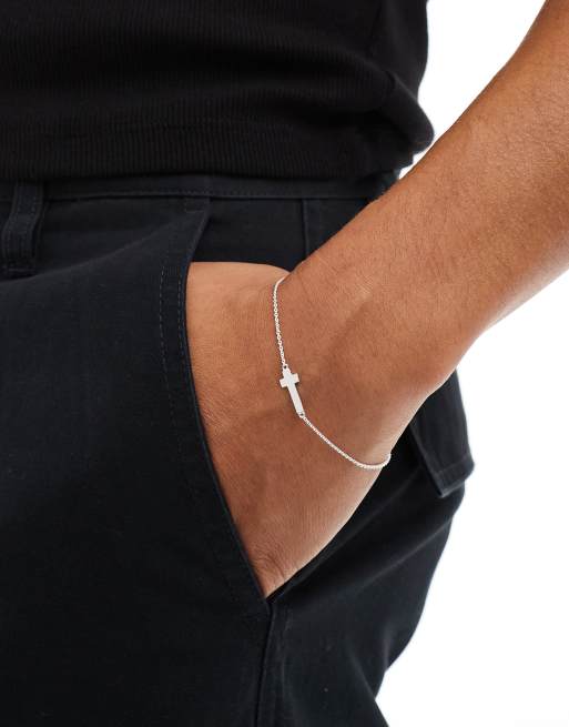 ASOS DESIGN - Armband van sterling zilver met kruis in zilverkleur