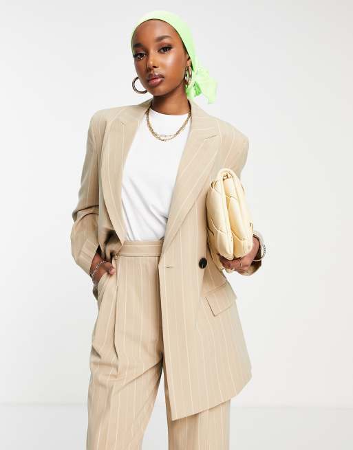 ASOS DESIGN - Asymmetrische blazer in camel met krijtstreep