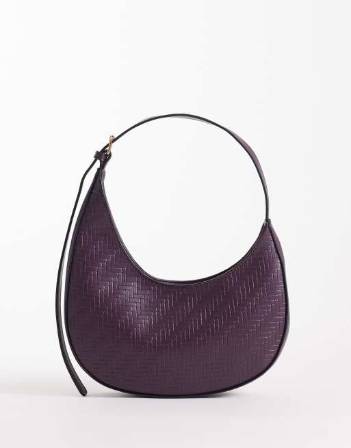 ASOS DESIGN - Asymmetrische geweven schoudertas met ronde onderkant en gespdetail in bordeauxrood