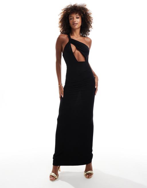 ASOS DESIGN - Asymmetrische maxi jurk met blote schouder en open voorkant in zwart