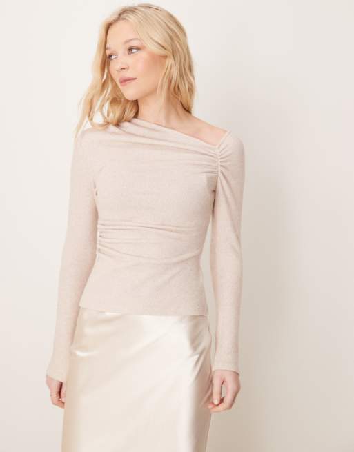 ASOS DESIGN - Asymmetrische superzachte gerimpelde top in crème