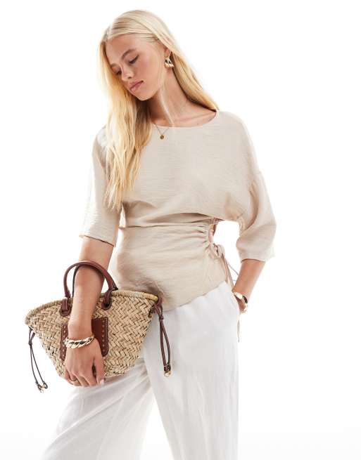 ASOS DESIGN - Asymmetrische top met uitsnijding aan de zijkant in stone