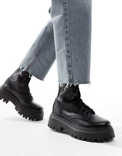ASOS DESIGN - Ava - Platte veterlaarzen in zwart