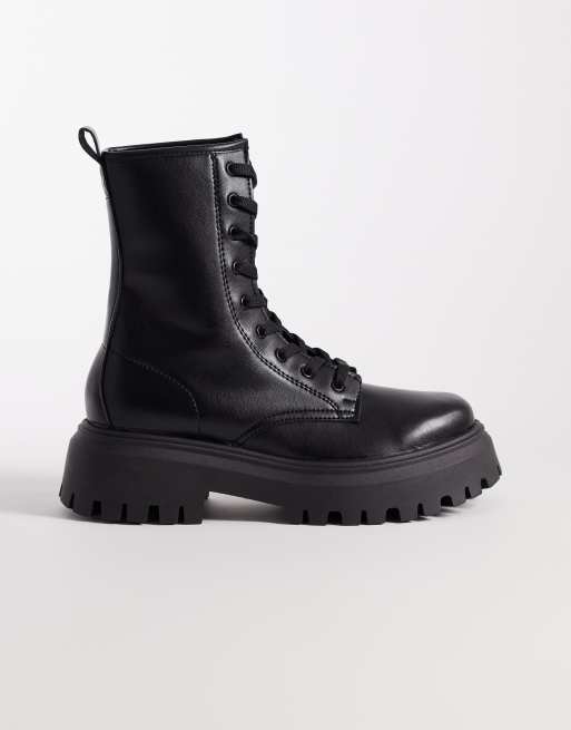 ASOS DESIGN - Ava - Platte veterlaarzen in zwart