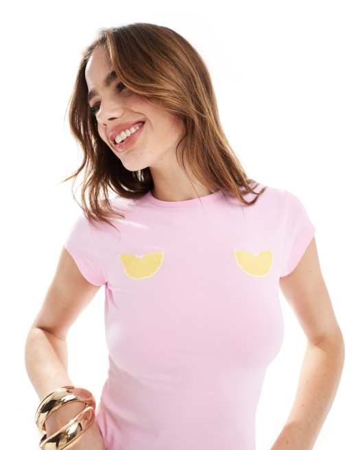 ASOS DESIGN - Baby T-shirt met citroenenprint in roze