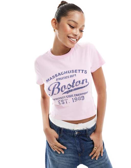 ASOS DESIGN - Baby-T-shirt met grafische varsity print in roze