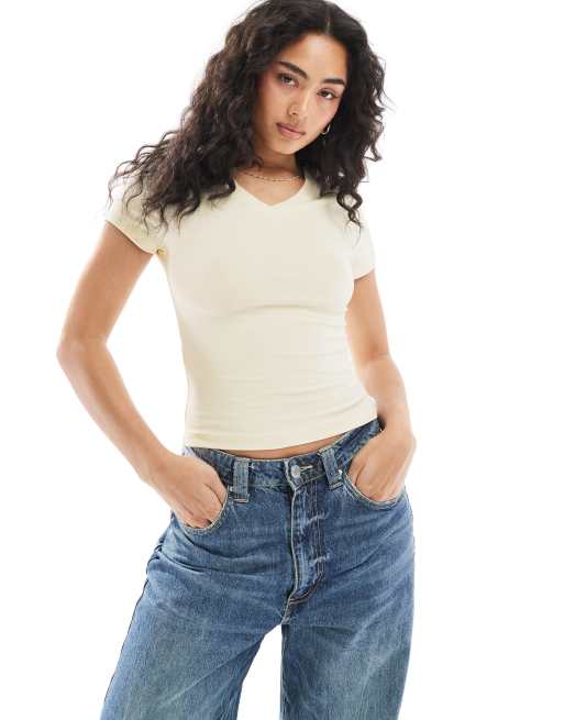ASOS DESIGN - Baby-T-shirt met V-hals in crème