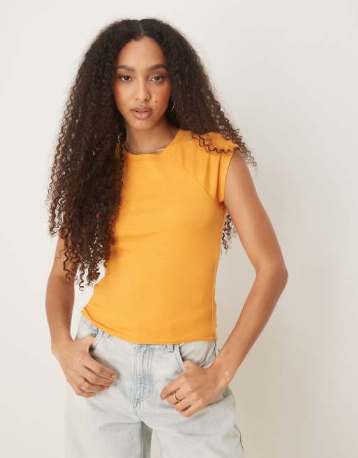 ASOS DESIGN - Baby-T-shirt van slubstof met raglanmouwen in abrikoos