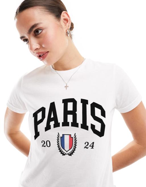 ASOS DESIGN - Baby tee met Paris-print in wit