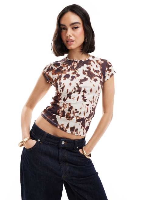 ASOS DESIGN - Baby tee van mesh met koeienprint