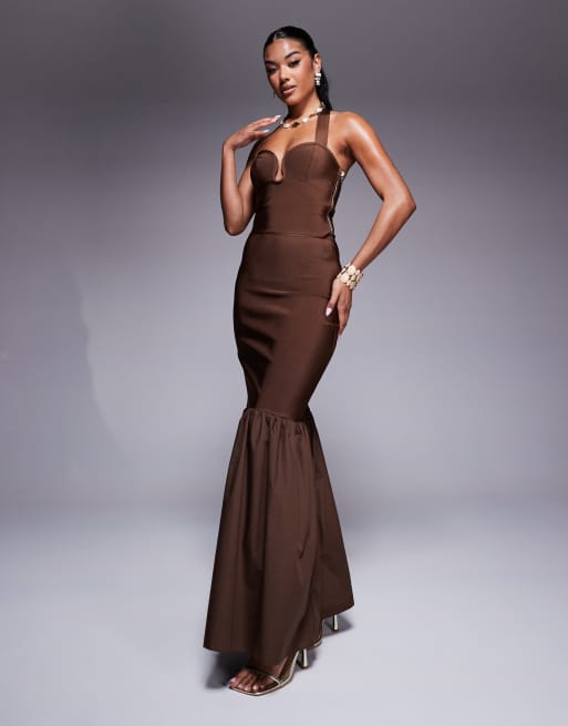 ASOS DESIGN - Bandage maxirok met peplum in chocoladebruin, deel van co-ord set