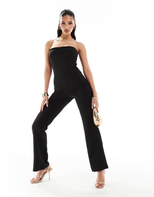 ASOS DESIGN - Bandeau-jumpsuit met wijde pijpen in zwart