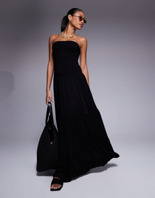 ASOS DESIGN - Bandeau-jurk van kreukelstof met gesmokt lijfje en stroken in zwart