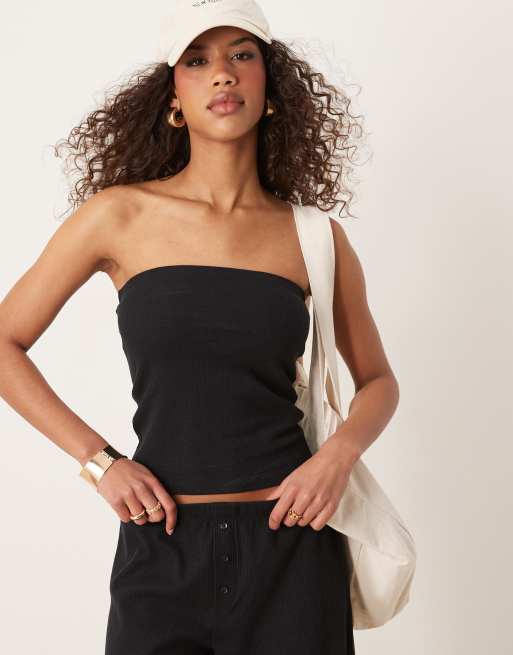 ASOS DESIGN - Bandeau-top met lange pasvorm en wafelstructuur in zwart