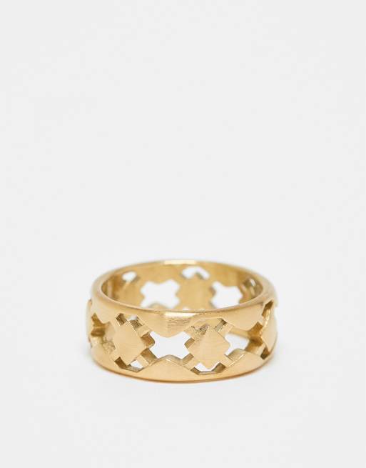 ASOS DESIGN - Bandring van waterbestendig roestvrij staal met uitgesneden patroon in geborsteld goud