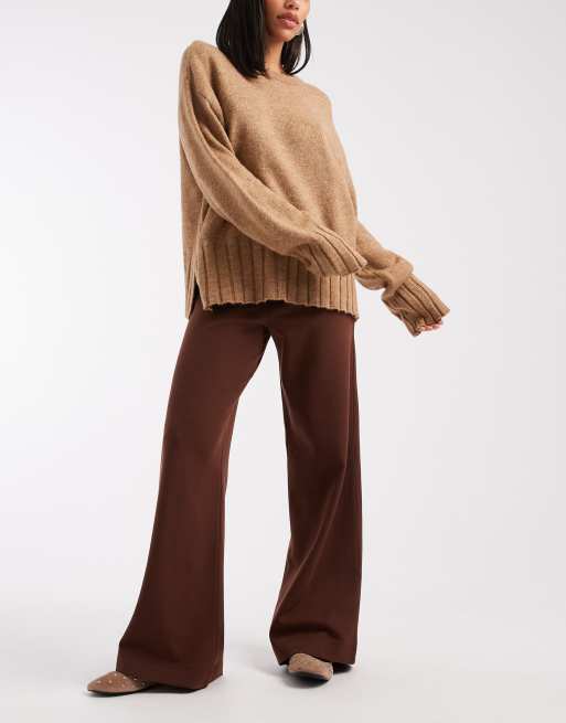 ASOS DESIGN - Basic interlock jersey broek met wijde pijpen in bruin