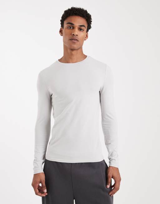 ASOS DESIGN - Basic muscle fit T-shirt met lange mouwen in lichtgrijs