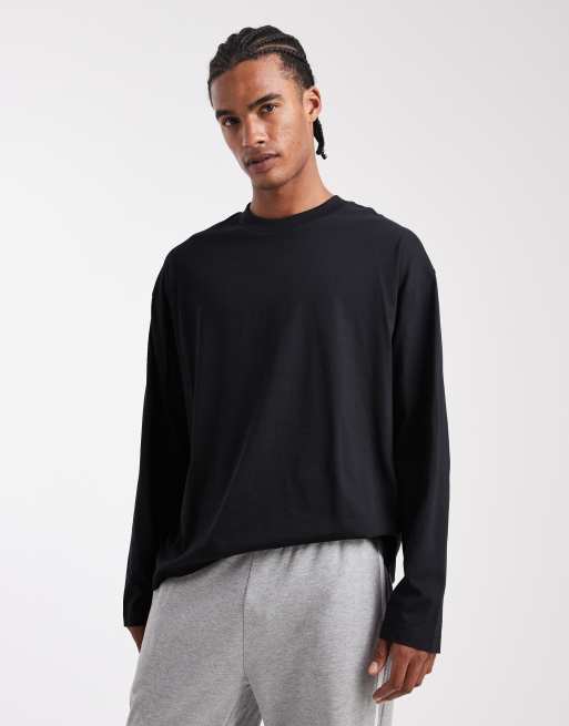 ASOS DESIGN - Basic oversized hoogsluitend T-shirt met lange mouwen in zwart