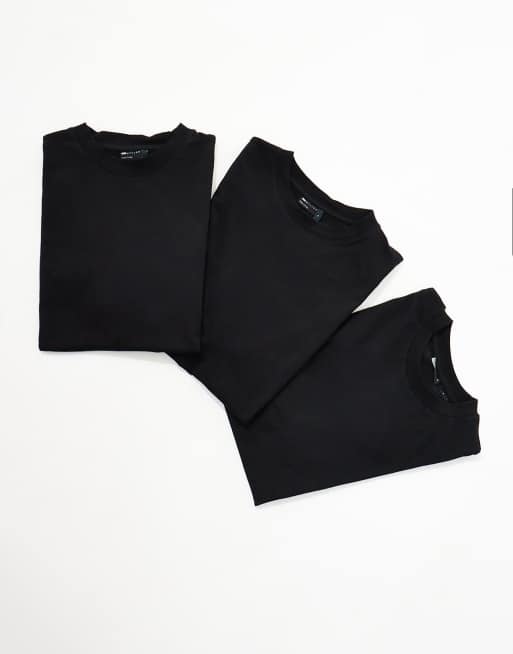 ASOS DESIGN - Basic - Set van 3 ruimvallende T-shirts met ronde hals in zwart