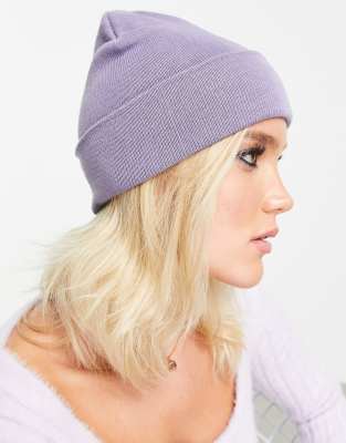ASOS DESIGN - Beanie met brede omslag in lila - PURPLE