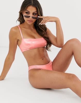 ASOS DESIGN - Bikini in metallic koraalrood