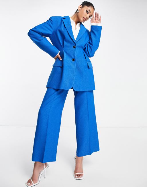ASOS DESIGN - Blazer met rits met geplooide taille in blauw