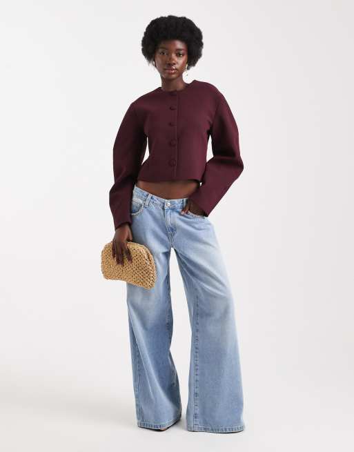 ASOS DESIGN - Blazer zonder kraag en met cocoonmouwen in pruimenpaars, deel van co-ord set