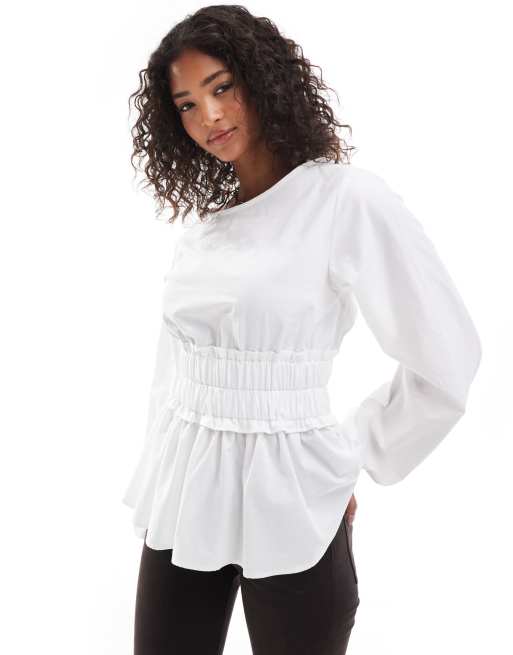 ASOS DESIGN - Blouse met elastische taille en blousonmouwen in wit
