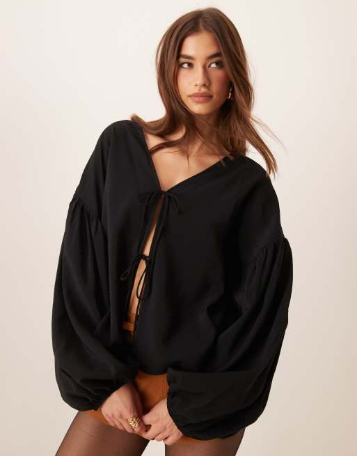 ASOS DESIGN - Blouse met gestrikte voorkant in zwart