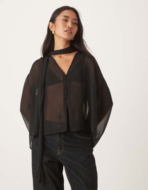 ASOS DESIGN - Blouse met sjaal en knopen in zwart