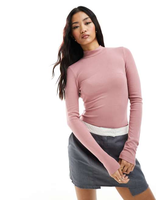 ASOS DESIGN - Body met col en lange mouwen in roze