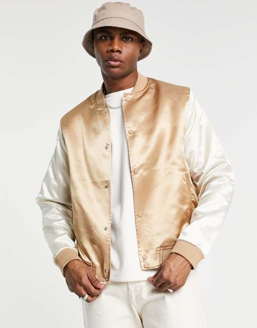 ASOS DESIGN - Bomberjack in goud met contrasterende mouwen