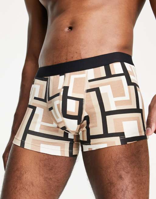 ASOS DESIGN - Boxershort van jersey met abstracte print in beige