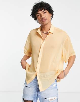 ASOS DESIGN - Boxy oversized doorschijnend overhemd in perzikkleur